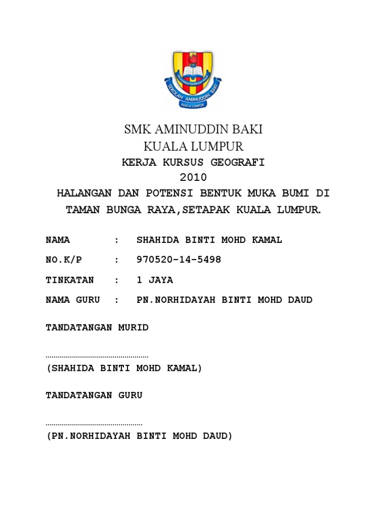 Related : Kajian Geografi Tingkatan 1 - Saya menjalankan kajian geografi tempatan dengan tujuan untuk memenuhi objektif berikut :.