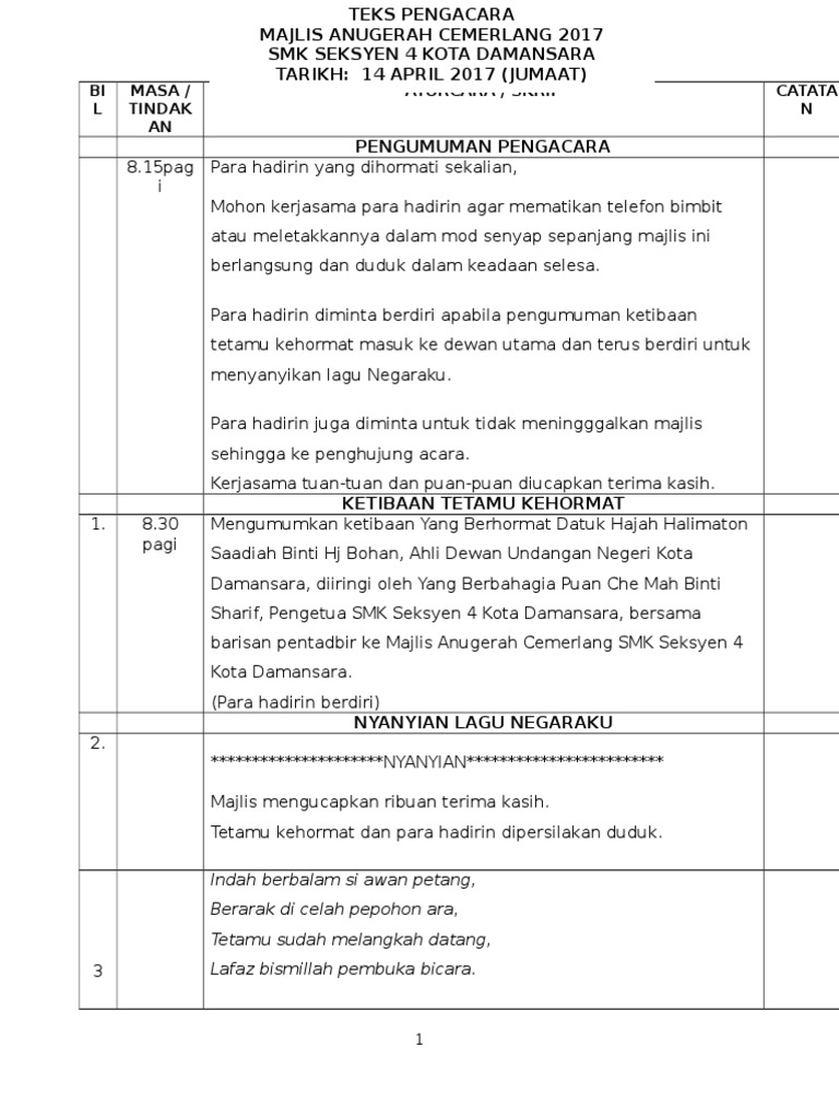 Skrip Pengacara Majlis Hari Bertemu Pelanggan 2016 from imgv2-2-f.scribdassets.com Kami merafakkan rasa kesyukuran kepada allah swt kerana dengan keizinannya. Majlis pelancaran gig tecknology sdn bhd 2015 tarikh : Kami bawakan kepada anda majlis perpisahan sempena persaraan pn bedah bt lahman, guru penolong kanan hem sekolah kebangsaan chepir. Tuan haji mohd nasarruddin bin ahmad. Kelahiran nabi membawa rahmat, anjuran tekun nasional. Majlis perkahwinan shafiq & nadhirah 23 & 24 feb 2018 kuala lumpur moments captured by: Mengumumkan ketibaan yang diraikan puan bedah bt. Doa majlis perkahwinan ini biasanya akan dibacakan oleh wakil pihak tuan rumah seperti ayah, abang, pak cik saudara ataupun iman jemputan.