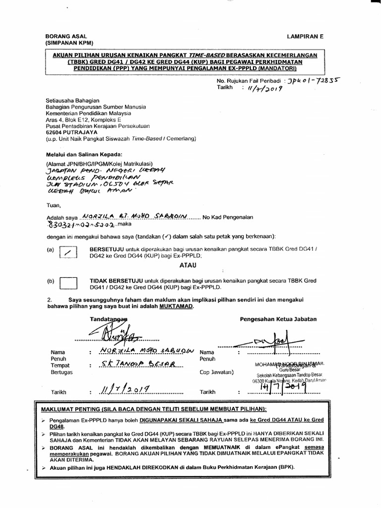 Panduan Permohonan Laluan Khas Guru Besar Ex Pppld Gred Dg44 Kup Dg41 Dg42 Ke Dg44 Bahagian Pengurusan Sumber Manusia Pdf Download Gratis from docplayer.info Nov 08, 2015 · kenaikan pangkat dg41 ke dg44 (2015). Borang kenaikan pangkat dg41 ke dg44 2018. Borang kenaikan pangkat dg41 ke dg44 2018. Posted on december 21, 2017 by zubir5350. Dimaklumkan bahawa perakuan kenaikan pangkat ke gred dg42 kup bagi ppp yang telah diluluskan pemangkuan ke gred dg42 kup di bawah urusan tahun 2018 berkuat kuasa mulai 24 disember 2018 yang telah melengkapkan tempoh pemangkuan selama setahun dan memenuhi syarat syarat untuk. Pengesahan dalam perkhidmatan dg29 2. Syed muhammad kamil al idrus bin syed ahmad no. May 01, 2021 · borang kenaikan pangkat dg41 ke dg44 2018.