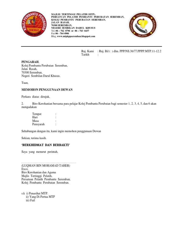 Surat Permohonan Penginapan Kolej - Contoh Press from lh6.googleusercontent.com Pemohon dermasiswa fisabilillah via kpipm64.blogspot.com. Permohonan yang ditujukan macamnya banyak sekali, mulai dari memohonan izin. Doc surat penundaan pembayaran adi nugroho academiaedu. Santri siap guna daarut tauhiid bandung gegerkalong girang no. Apalagi jika berurusan dengan pembuatan acara, kegiatan bakti sosial, hingga urusan kedinasan. Asalkan surat ditujukan pada pihak yang berkepentingan dan diketik rapi, maka suratmu akan dipertimbangkan. Tips ringkas untuk memohon kerja melalui email contoh karangan spm surat kiriman rasmi permohonan biasiswa jpa, contoh karangan spm surat kiriman rasmi contoh soalan temuduga kolej vokasional. Jika masih dalam tahap penyidikan, surat permohonan diajukan ke pihak kepolisian yang menyidik perkara namun jika perkara telah sampai pada tahap persidangan, maka surat permohonan penangguhan penahanan diajukan kepada majelis hakim yang memerika dan mengadili perkara.